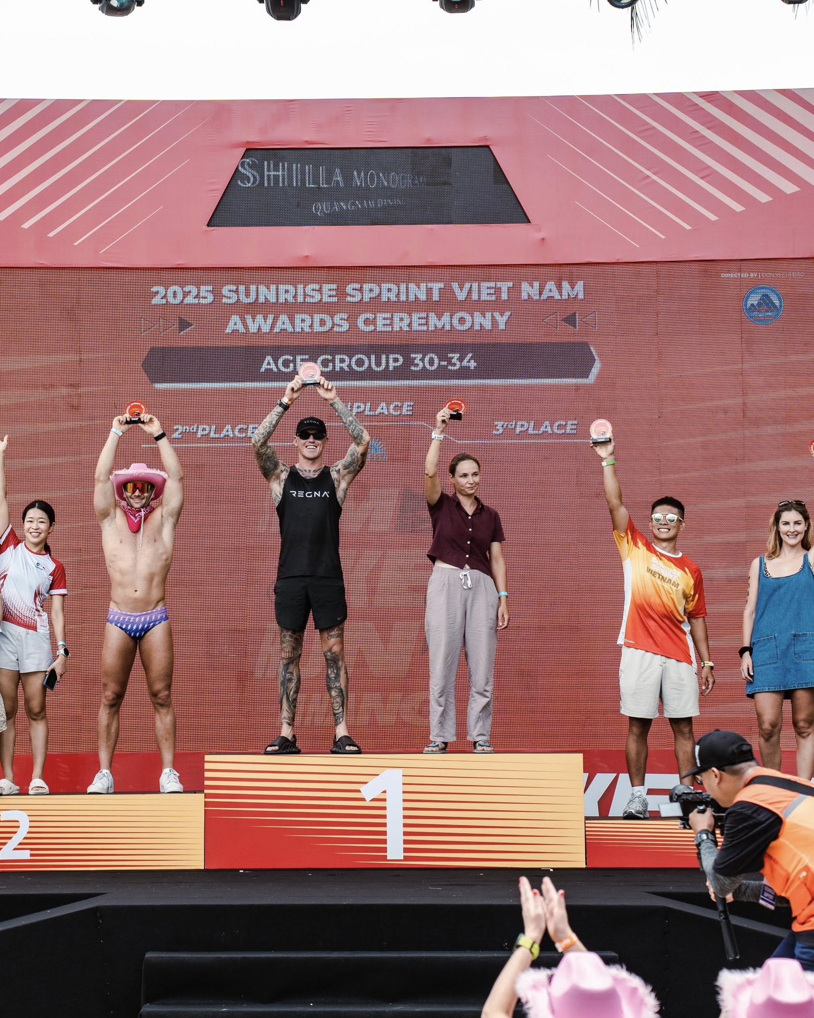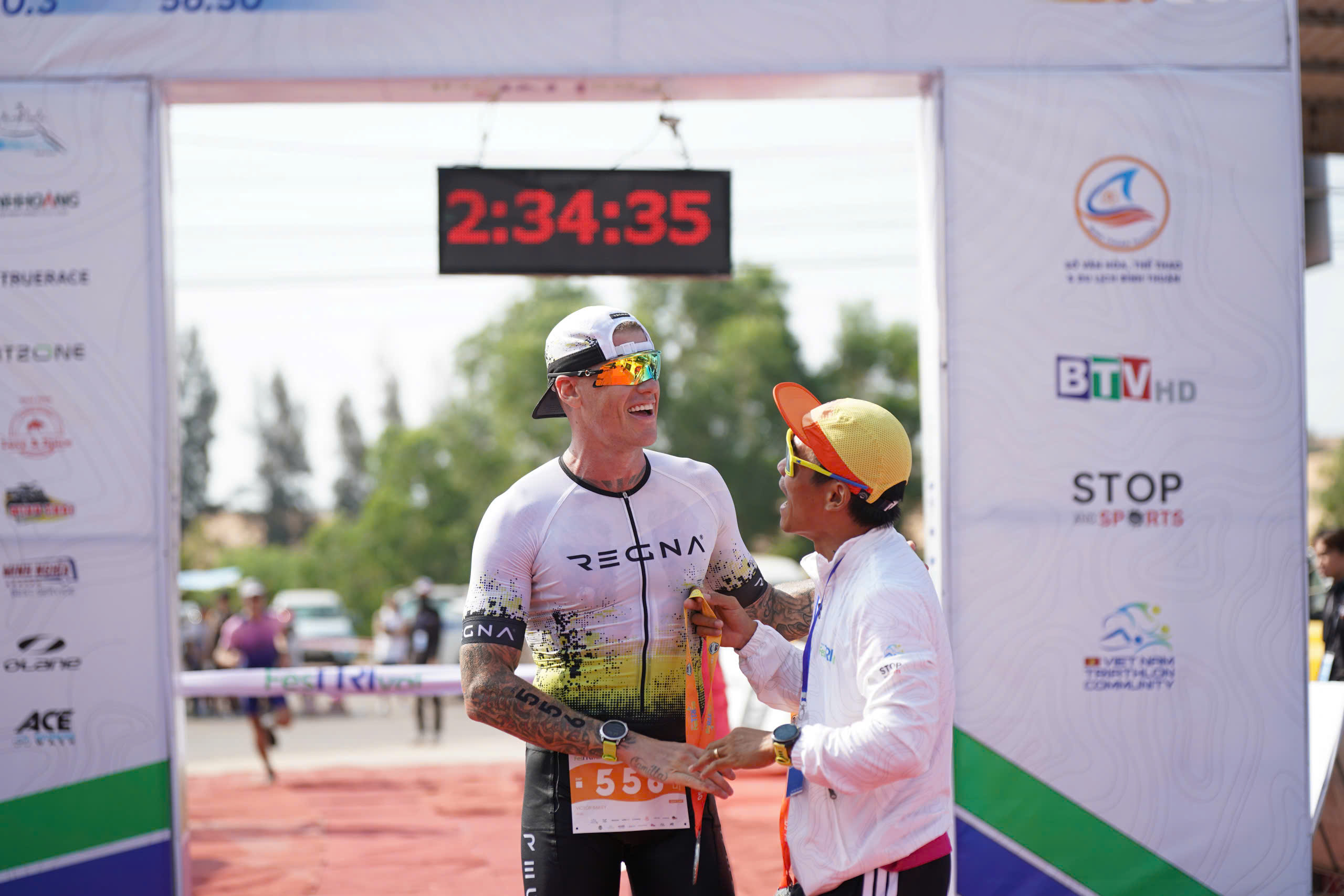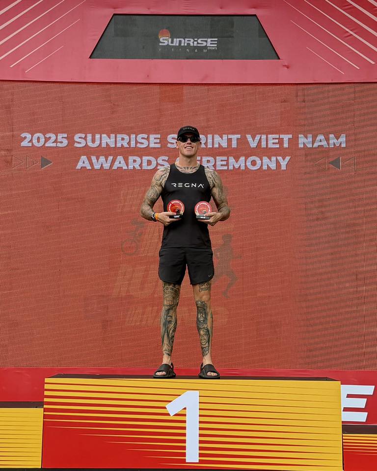 Victor Bailey Steffensen from Denmark finished 3rd overall in the Sprint Triathlon (warm-up race before the main Ironman 70.3 Da Nang), with a time of 1:08:52.
